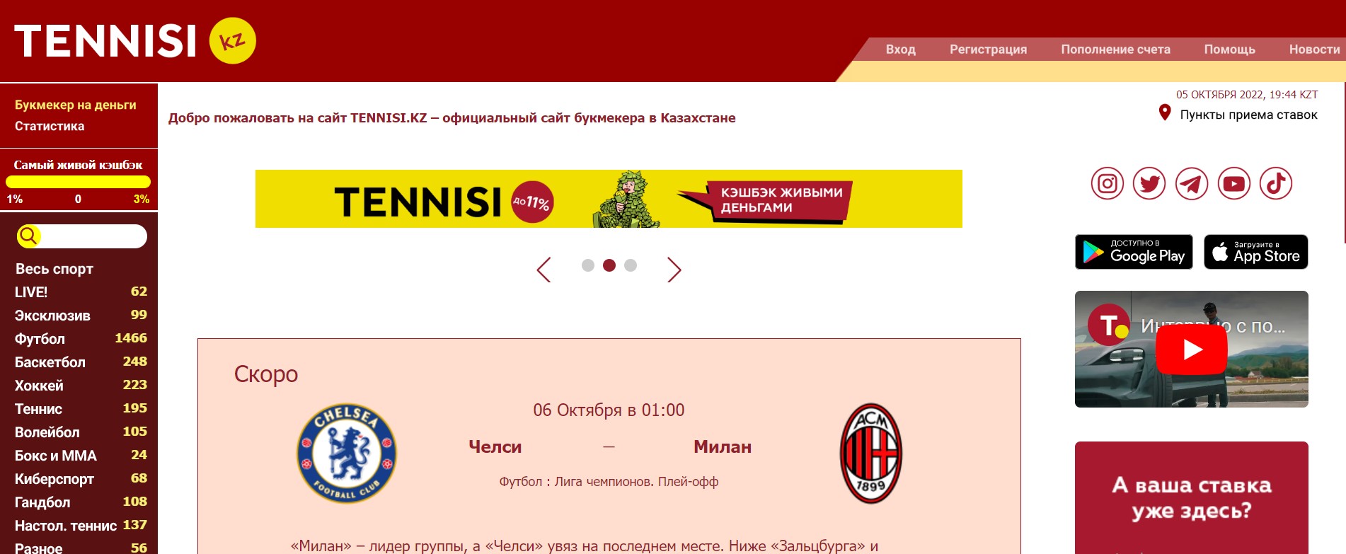 Қазақстандағы Tennisi букмекерлік кеңсесінің ресми сайты